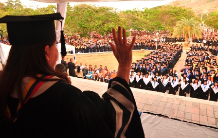 Recordó que cada uno de los nuevos graduandos forman parte de una estirpe de triunfadores, mas de 100 mil egresados de esta Universidad, que se encuentran hoy diseminados por toda Venezuela y el mundo, por lo cual deben sentirse orgulloso de la insignia inmortal grabada en su medalla que los acredita como egresados de la Universidad de Oriente.